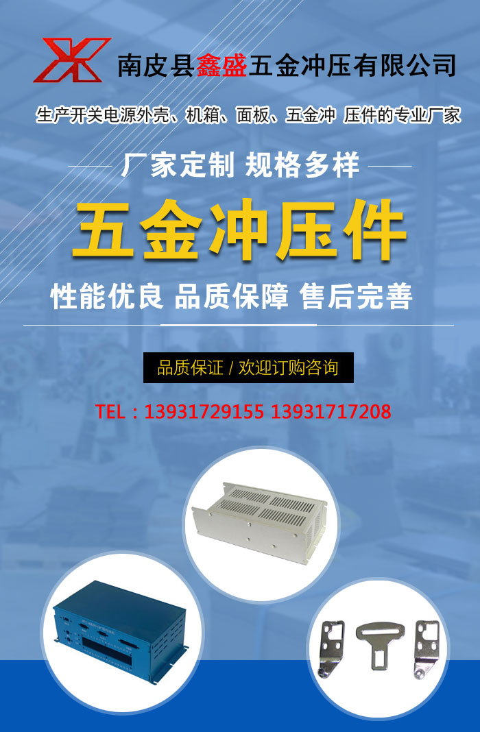 南皮縣鑫盛五金沖壓有限公司成立于1987年,是生產(chǎn)開關(guān)電源外殼、機箱、面板、五金沖 壓件的專業(yè)廠家,位于“五金之鄉(xiāng)”河北省南皮縣車官屯工業(yè)園區(qū)。